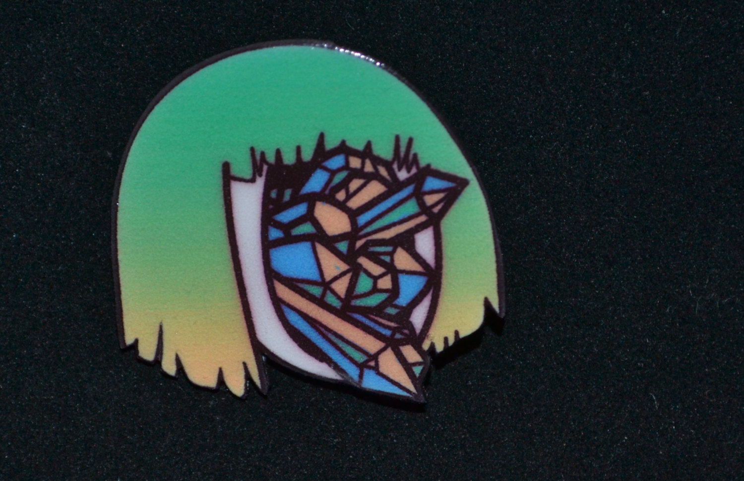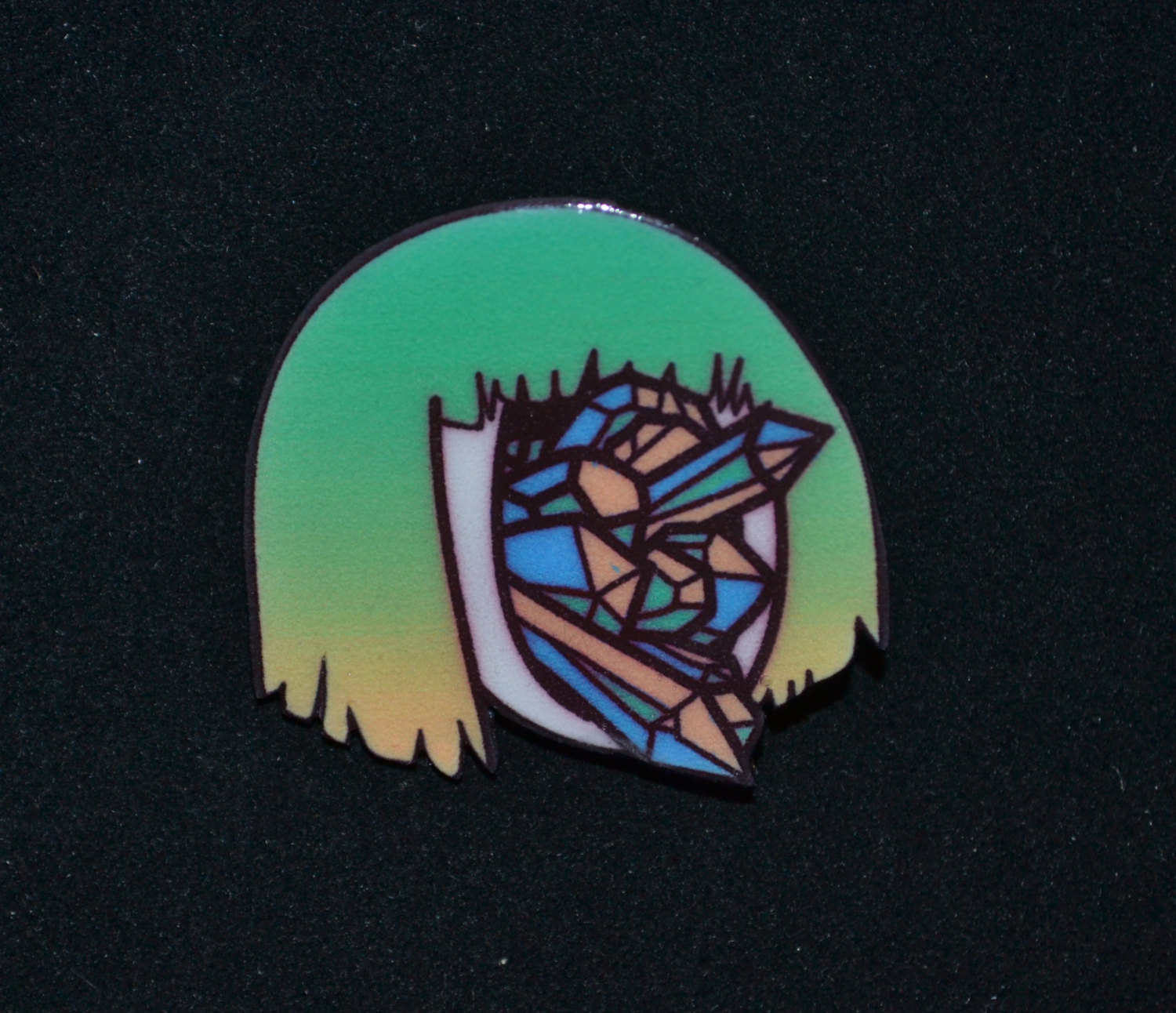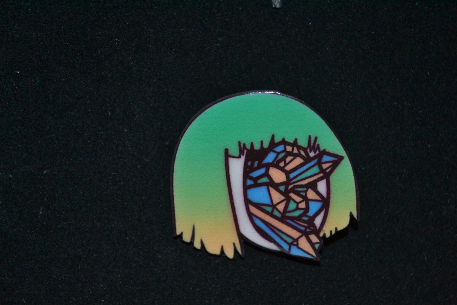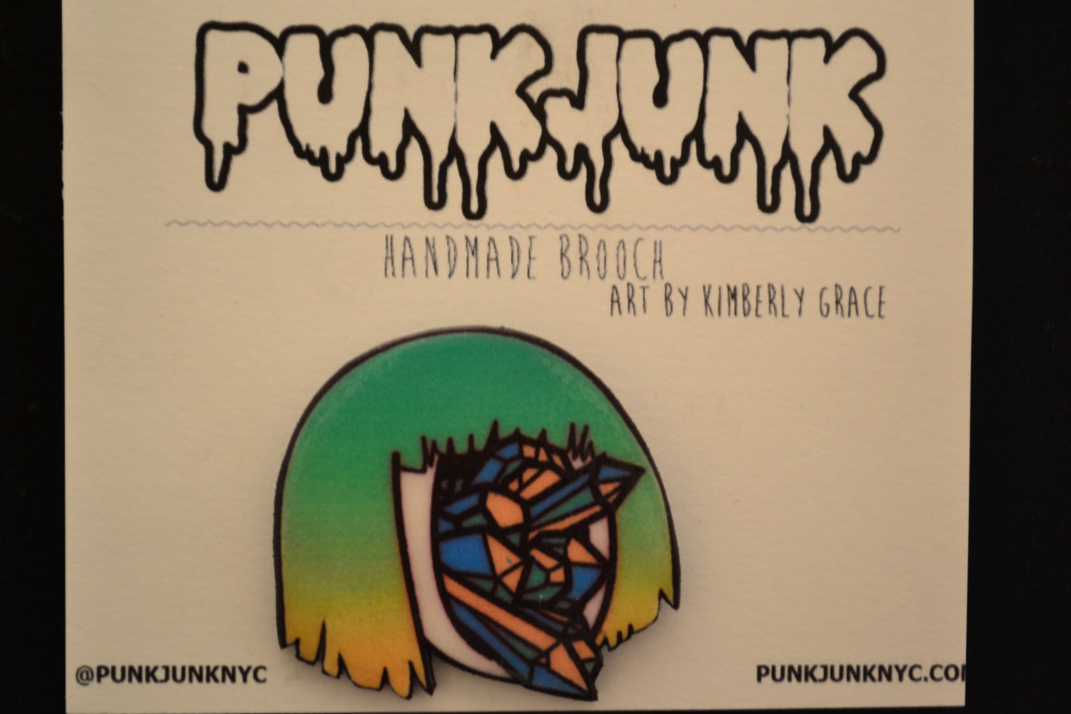 The brooch is handmade and 2'' in length with awesome original art by Kimmy Grace.